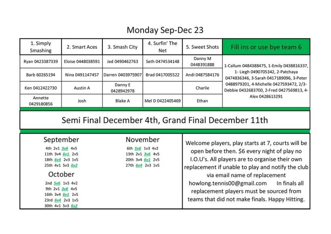 The Howlong Tennis Club is celebrating the festive season with a Christmas BBQ Party and would like to invite all members and family to come along. It will be held on Sunday 17th December at 11.30am at the Howlong Tennis Club. Please RSVP how many will attend by Wednesday 13th to: howlong.tennis00@gmail.com Hope to see…