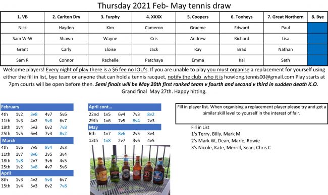 Here’s the draw for the Howlong 2019 Summer comps: Download Draw